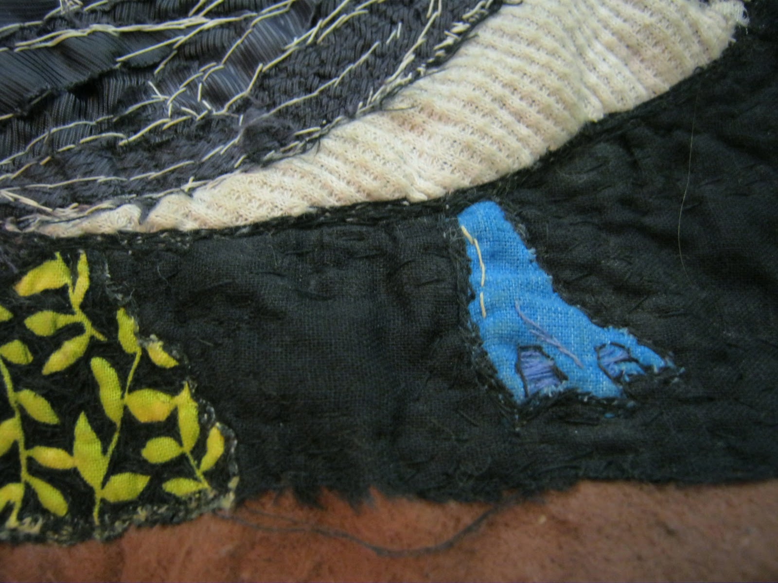 When I first began working on it, I knew very little about fiber arts, especially sewing techniques and applique. I didn't even know what applique was. In my frustration, I began haphazardly sewing without any rhyme or reason.